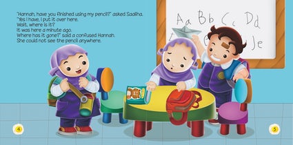 Saaliha lends her friend her favorite pencil, but she accidentally loses it. How will Saaliha react? Will she get angry at her friend? No, Saaliha shows us the best way to act when something like this happens. Saaliha learns that controlling your anger isn't that difficult, and you can too.