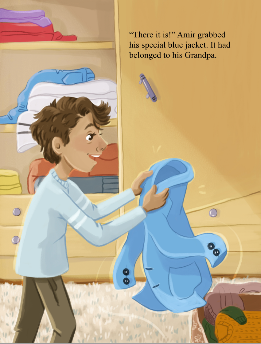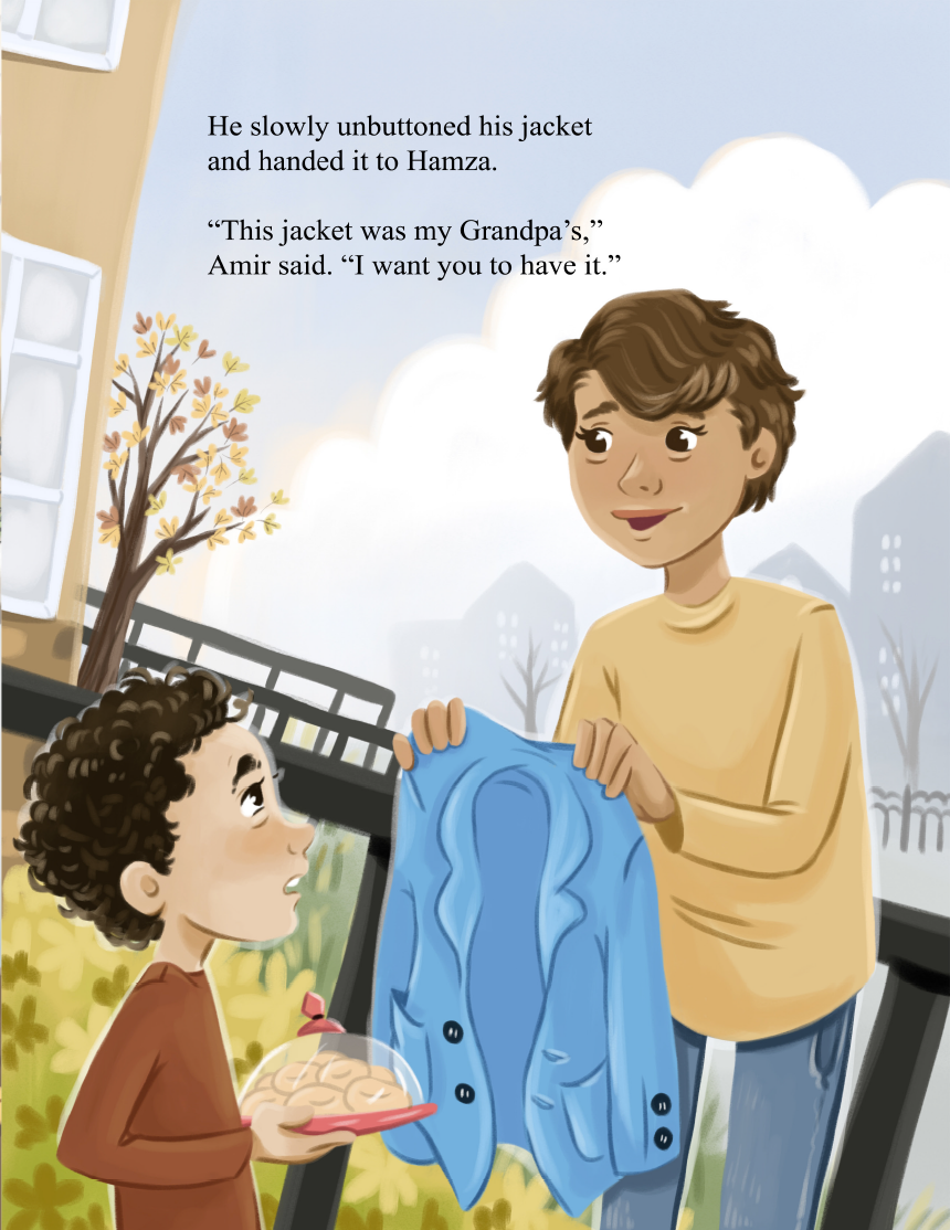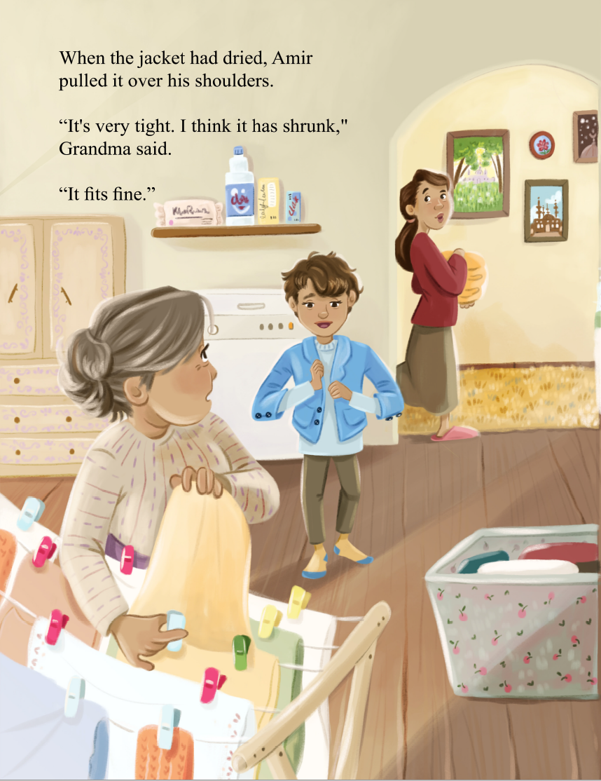 Amir loves his Grandpa and wants to wear Grandpa's jacket to remember him. But after a hot wash cycle, Amir's jacket shrinks and he realizes he has to make a choice. Would his grandpa be proud of the decision Amir makes?