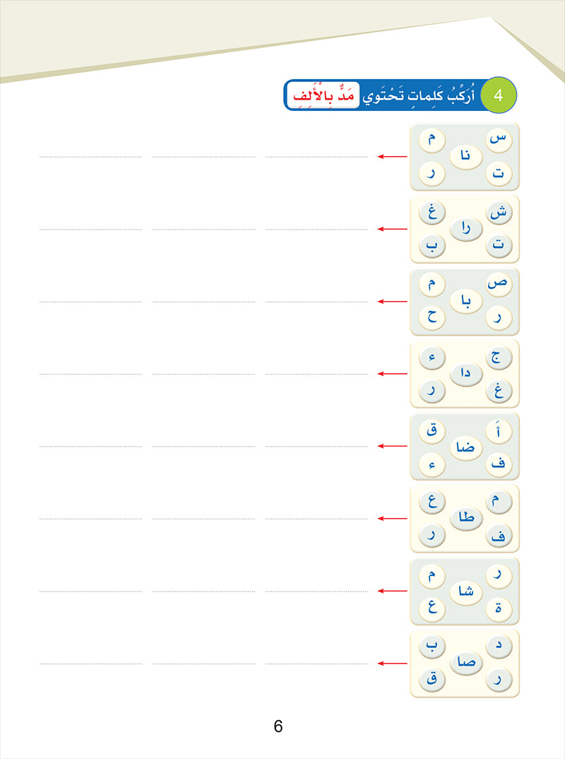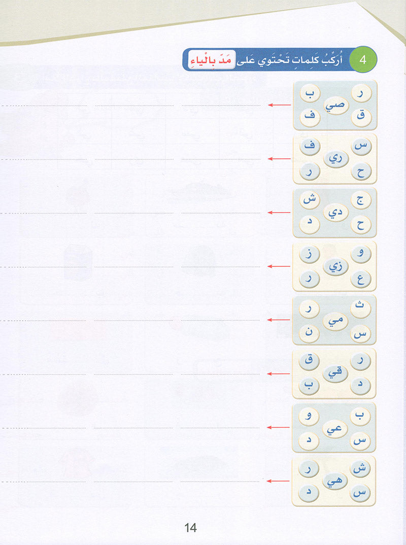 The book includes varied activities that suit the students' level and that help students with the definite article (al al-tareef al-shamsiyyah and al-qamariyyah), opened and closed ta, tanween, al-shadda, and letters with similar pronunciation, all in a unique way that develops observation, concentration, and attention.