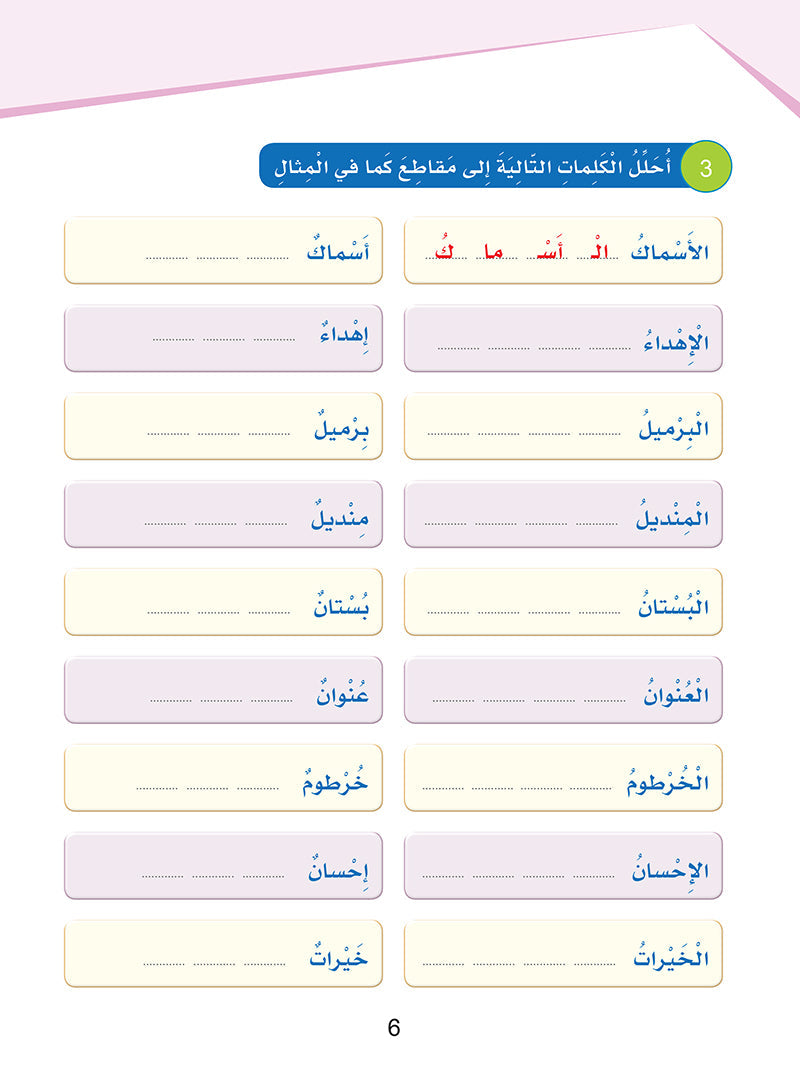 A supplementary book intended for fifth level students to train them on the correct basics of writing in a unique way, so that students are more accurate in writing letters with short vowels, mudud, and tanween, so that student can write letters, syllables, words, sentences, and paragraphs symmetrically and in appropriate relation to the line.