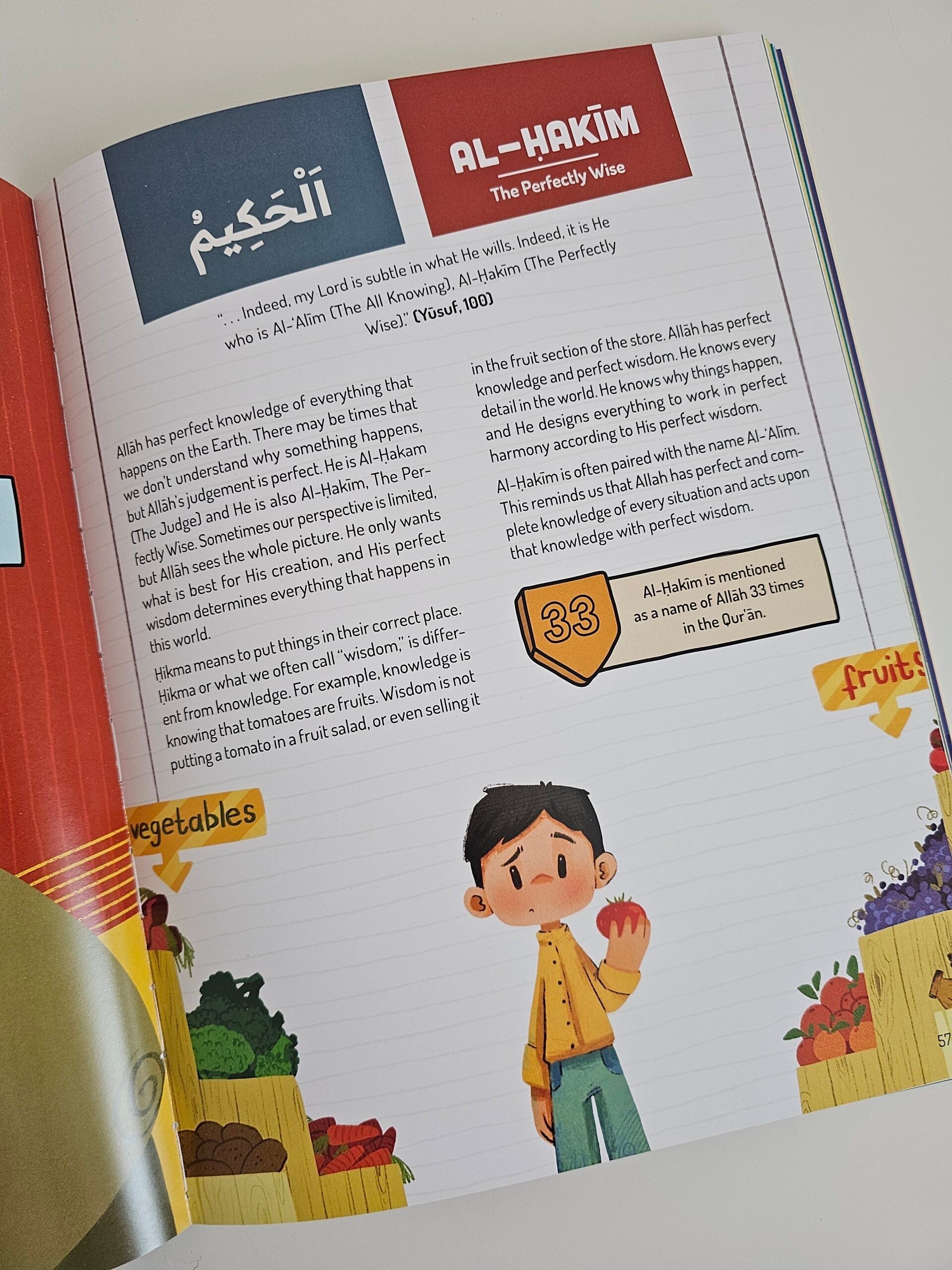 Embark on a captivating journey through the 99 names and attributes of Allah, written especially for young hearts and minds. Beautifully illustrated, this book is designed to introduce children aged 7 and up to the profound meanings and lessons inherent in Allah’s names. Each name is presented in a simple, engaging manner, encouraging young readers to reflect on these divine qualities and understand their significance in everyday life.