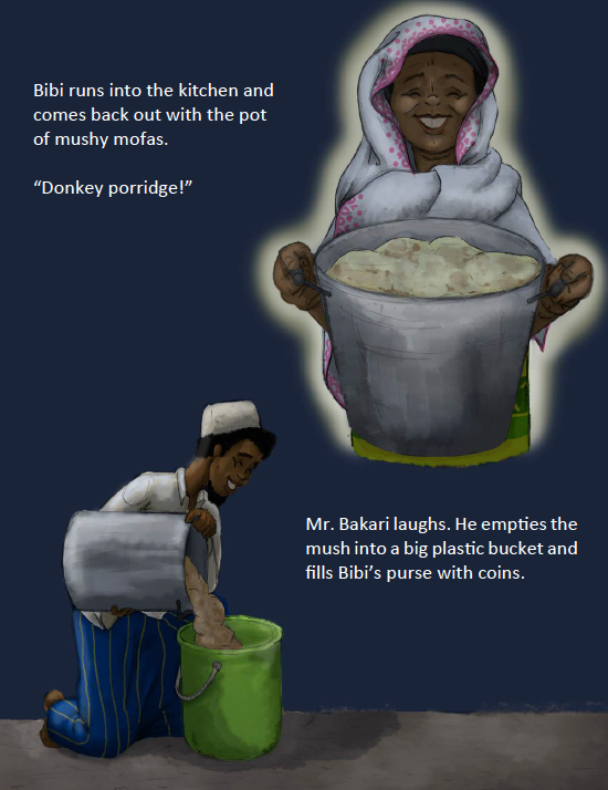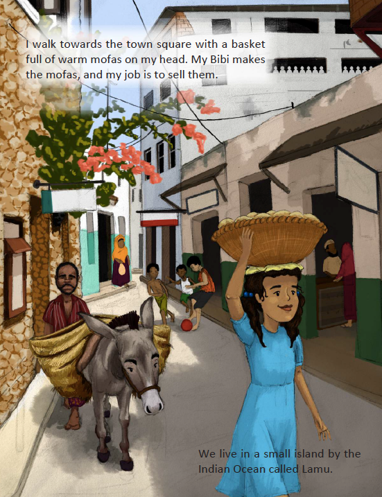 Mwana lives in Lamu with her grandmother, Bibi. Bibi makes the best mofa bread on the island, and Mwana sells them at the market.