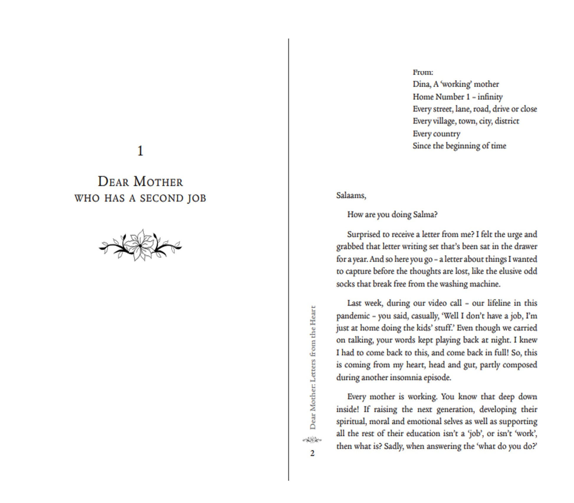 Dear Mother… brings together mothers of all ages and backgrounds in a compendium of fictional letters, written from the heart. Great challenges and responsibilities, hopes and disappointments are explored without apology. As one mother prepares for a new-born, another shares her experience of being a single parent. Why is a mother at the primary school gate feeling burnt out by 9 am and what advice does a grandmother pass down to her granddaughter? Whether she’s sitting in the ante-natal clinic, on a bus or in the masjid, these letters reveal a variety of mothers’ inner dialogue – one which is rarely heard in society.
