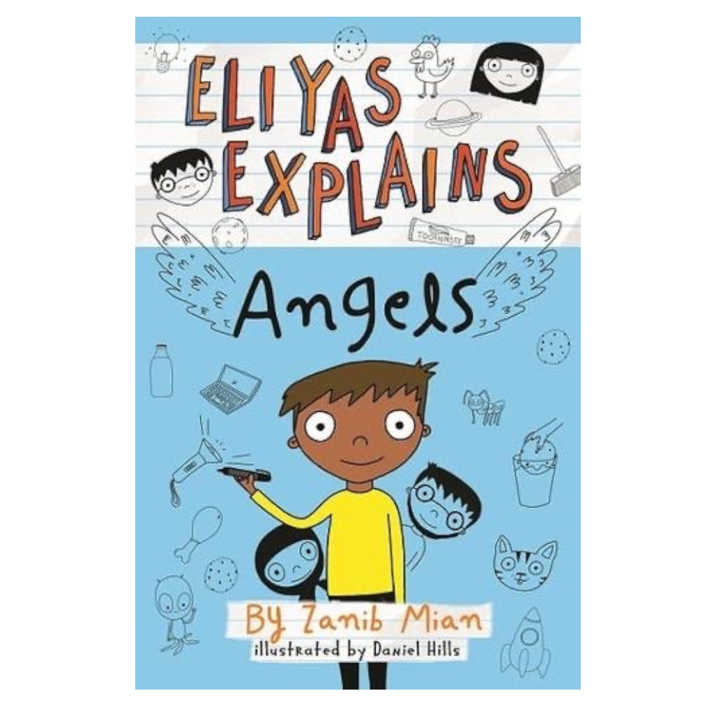 'I'm Eliyas. I'm really good at explaining things my adults told me about, which is handy for you if you're curious about Angels. My family is kind of wacky, you'll hear lots about them too, and the funny things that happen to us, but mostly about angels.
