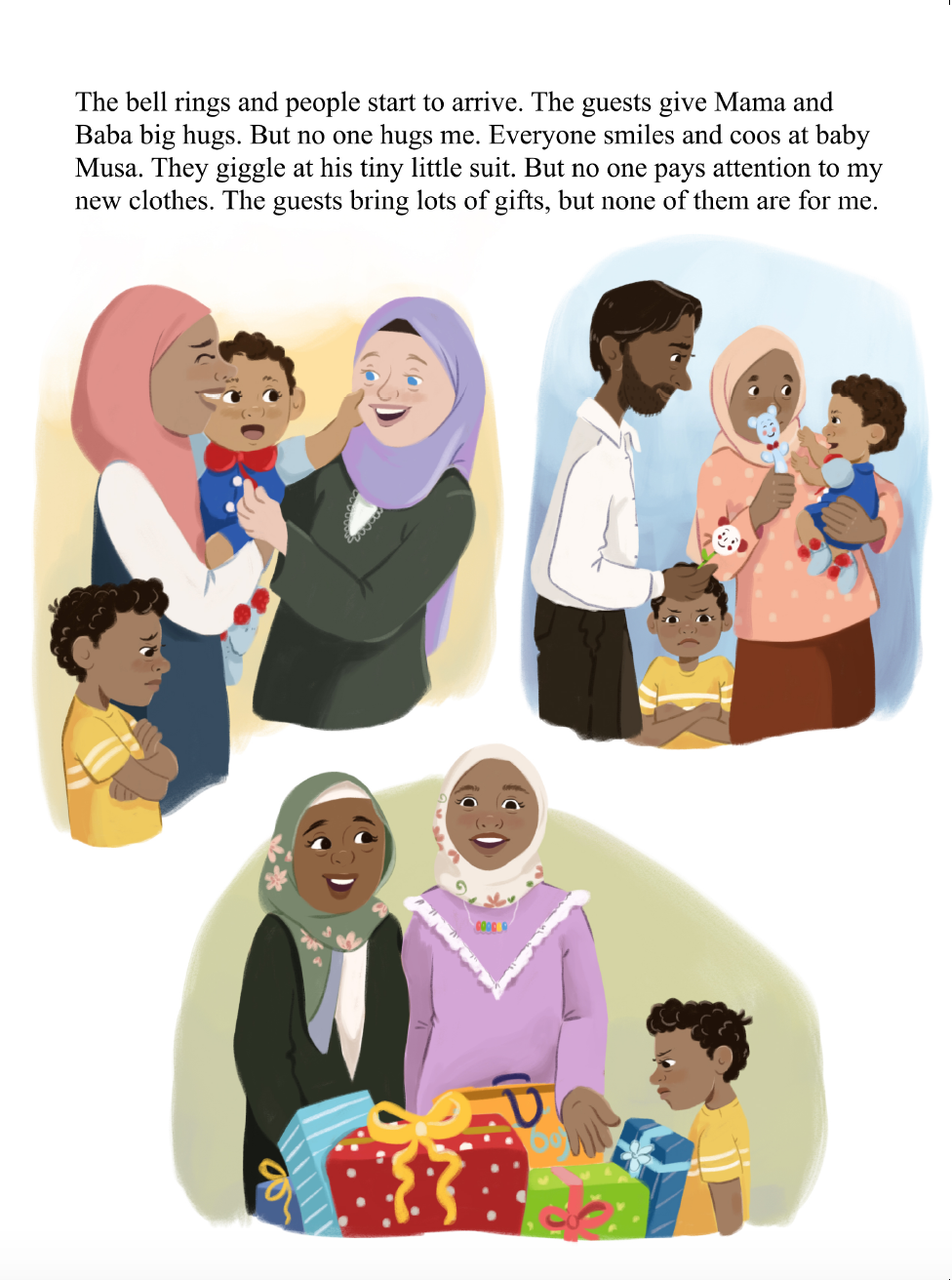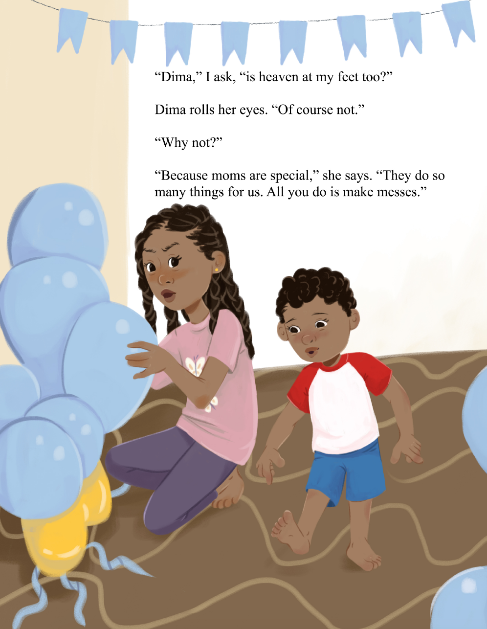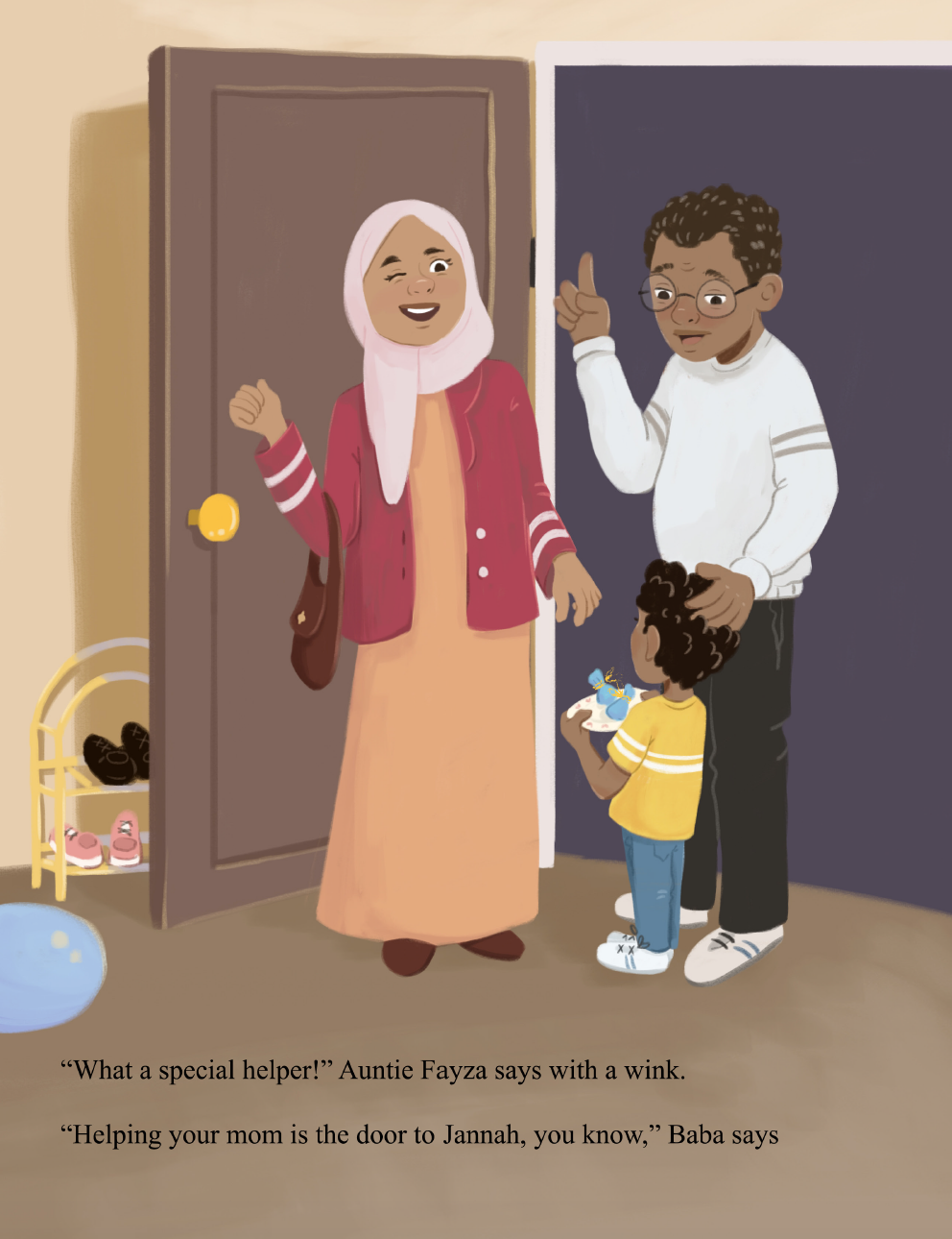 Since Ibrahim's little brother Musa was born, Ibrahim hasn't been feeling very special anymore. At Musa's Aqeeqah, he learns that Heaven is at his mom's feet, so he decides he wants heaven to be at his feet, too! Maybe if he copies what his mom does, he will finally be special again, just like her. Can Ibrahim do everything Mama does or are her shoes too big to fill?