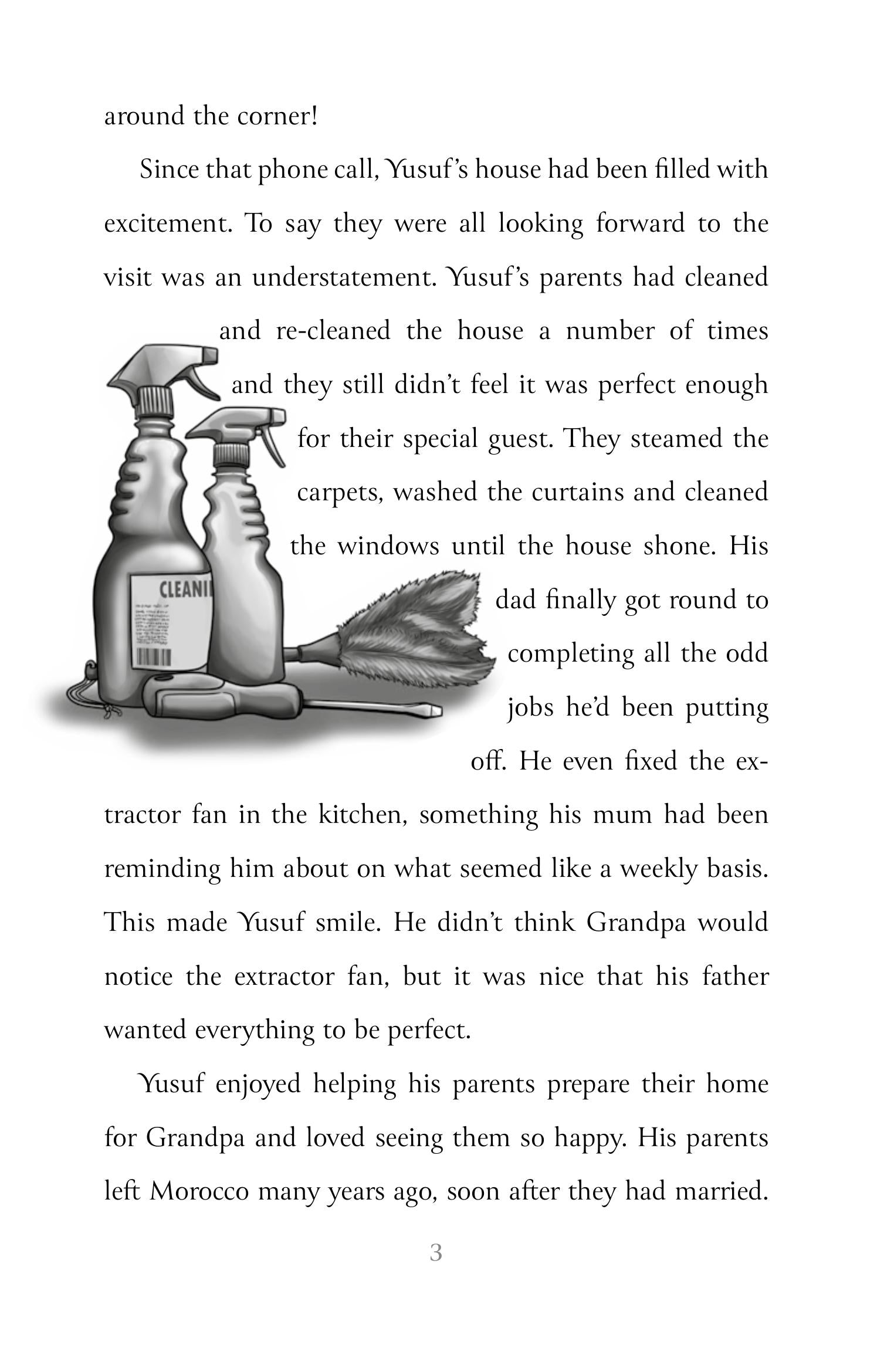 Yusuf is like any other 10-year-old boy living an ordinary life with his parents. He likes nothing more than spending time with his best friend Jack. Eight years after Yusuf’s one and only trip to see his grandfather, the Ayouch family excitedly prepares to welcome Grandpa to England, at last! But even Jack has to agree that the gift that Grandpa brings Yusuf from Morocco is disappointingly ordinary. Or is it?