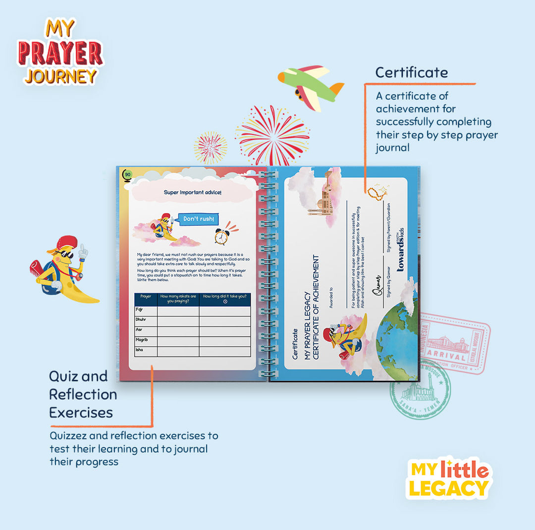 The Prayer Journal and Activity book from the My Little Legacy range is specially designed to take your child on an educational and interactive journey to learning and understanding Salaah.