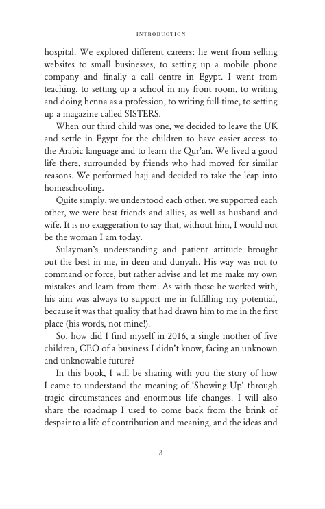 But, through her faith in Allah’s plan for her and her decision to choose gratitude over despair, she was able to rise from the tragedy and show up differently: more present, more confident, more powerful, and more grateful than ever. The book is replete with personal stories, quotes from Qur’an, hadith and contemporary thinkers, as well as action points and space for the reader to reflect and apply the principles.
