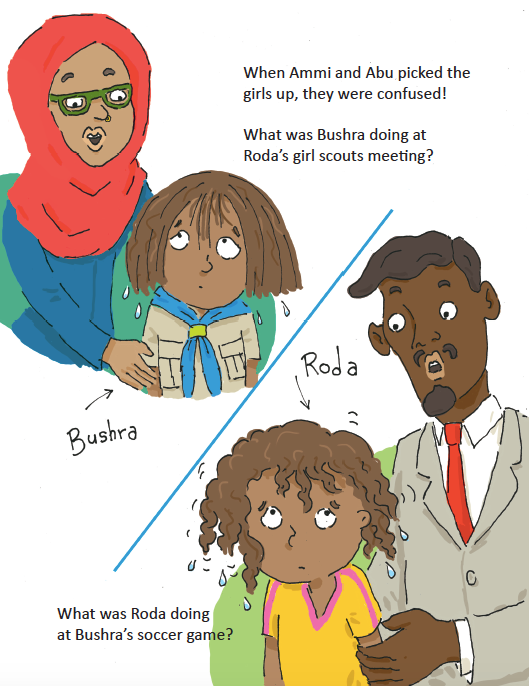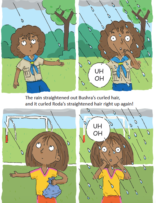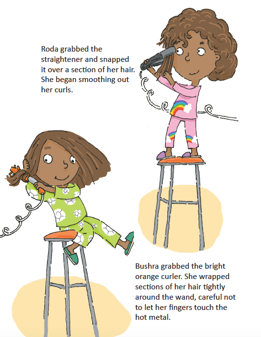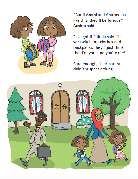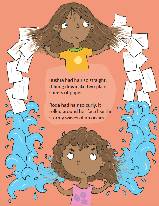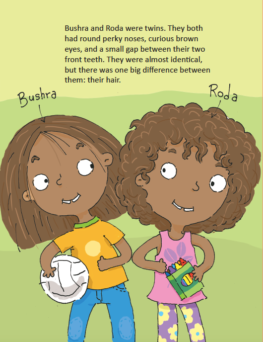 Roda and Bushra are twins. They are nearly identical, but there is one big difference between them: their hair! Neither Bushra nor Roda is very happy about that.