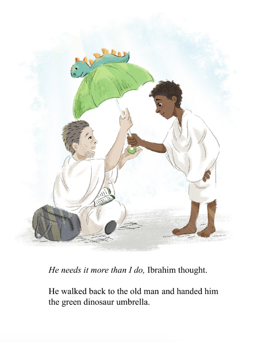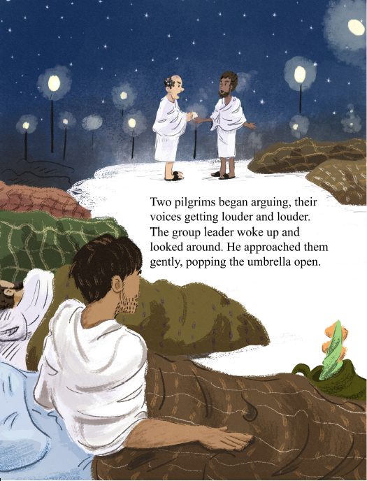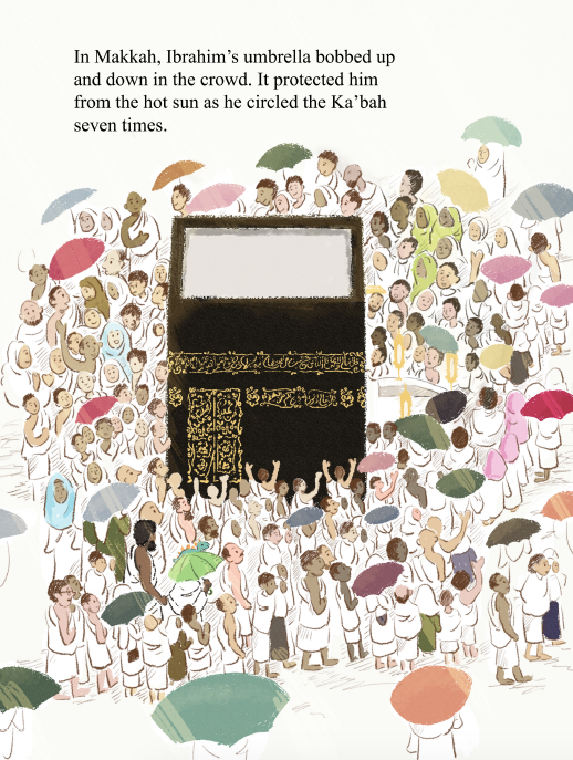 In this beautifully illustrated, whimsical story, a green dinosaur umbrella travels to Makkah and exchanges hands, helping pilgrims along their journey of Hajj.