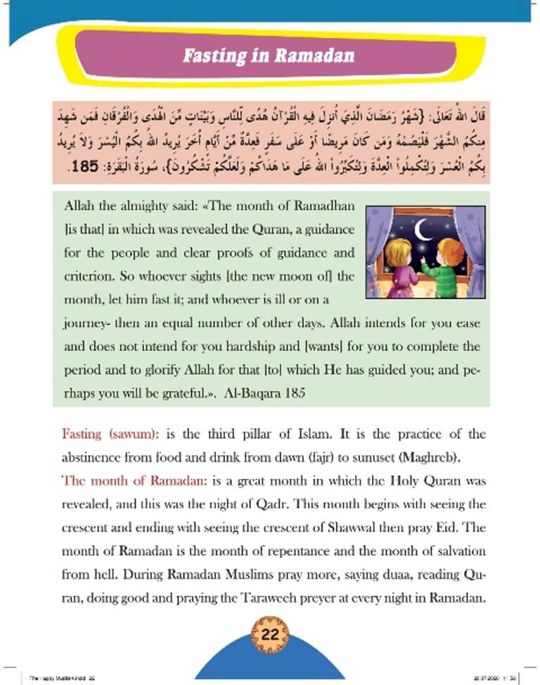 A modern series in Islamic studies, for ten levels (KG – 6th). It is a comprehensive series that contains Islamic manners, literature and teaches the implementation of the five pillars of Islam in a simple way.