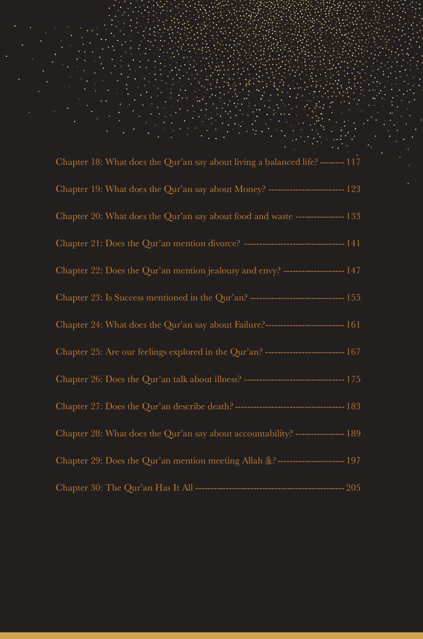 The Qur'an Has It All presents answers to universal questions we all have about our purpose, relationships and life's challenges. Based on Dr Shaykha Haifaa's compelling Ramadan series with Jannah Institute, this book draws on verses of the Qur'an that guide reader's soul-searching thoughts about their existence; their home and communal life; their work, responsibilities and trials that come with every stage of life. Alongside the guidance, readers are invited to reflect on key points at the end of each chapter to deepen their connection with the Qur'an. Whatever you seek, The Qur'an Has It All offers wisdom, peace and direction to find our way back to Allah's divine message.